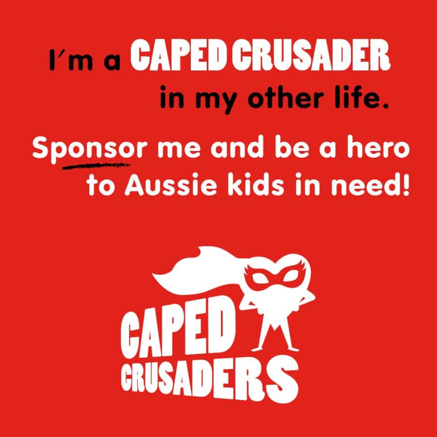 “Did you know, in my other life I’m a Caped Crusader?! Click the link below to sponsor me and you’ll be a hero to Aussie kids too! <Insert link to your fundraising page here>“