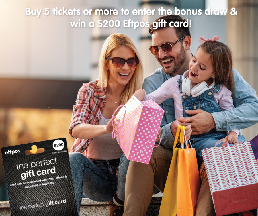 Want to enter our bonus draw to win a $250 Eftpos gift card? Treat yourself to a shopping spree and redeem your voucher anywhere in Australia where Eftpos is accepted! All you have to do for the chance to get your hands on the gift card is grab five tickets or more and you’ll be automatically entered to win!