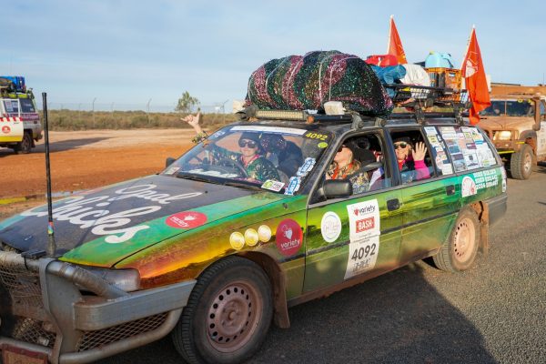 After a lay day and night of celebration at the National Bash Party, day 6 marked the halfway point of our journey. Bashers tackled the mighty sands of Ngarkat Conservation Park with determination – towing, pushing, and digging each other out of the sand before finally making their way into Nhill.
