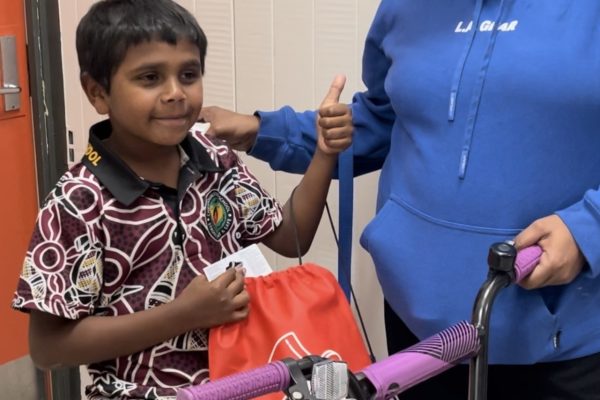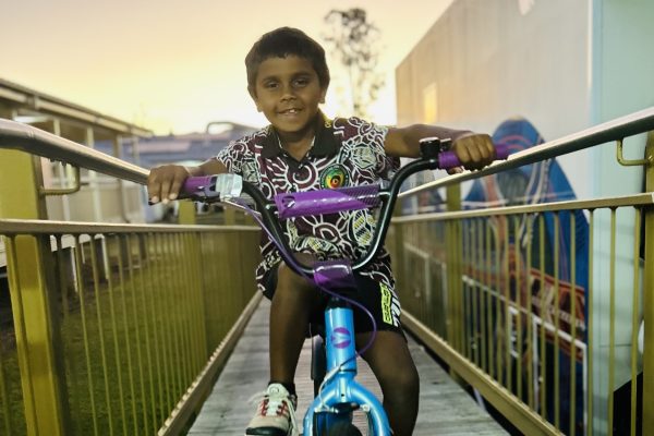 Thanks to the Variety Bikes for Kids program, we could provide Jarrabah with the perfect bike and Joanne was able to hand deliver it to him on her next visit to Cherbourg.