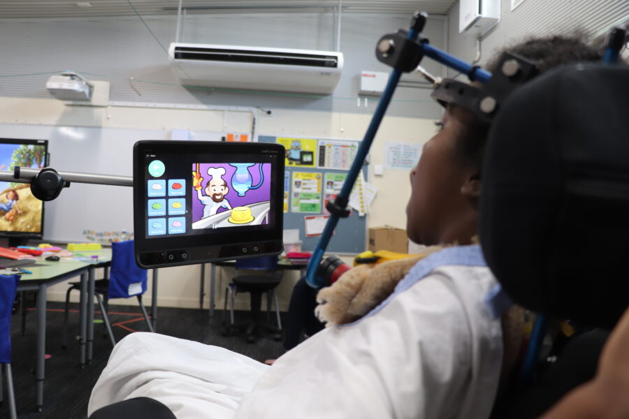 For children living with complex physical disability, cerebral palsy or neuromuscular conditions, traditional ways of learning and communicating can be out of reach. An eye gaze system changes that. Using only their eyes, students can make choices, express feelings, take part in literacy and numeracy lessons, and engage independently with digital learning – sometimes giving them a voice for the very first time.