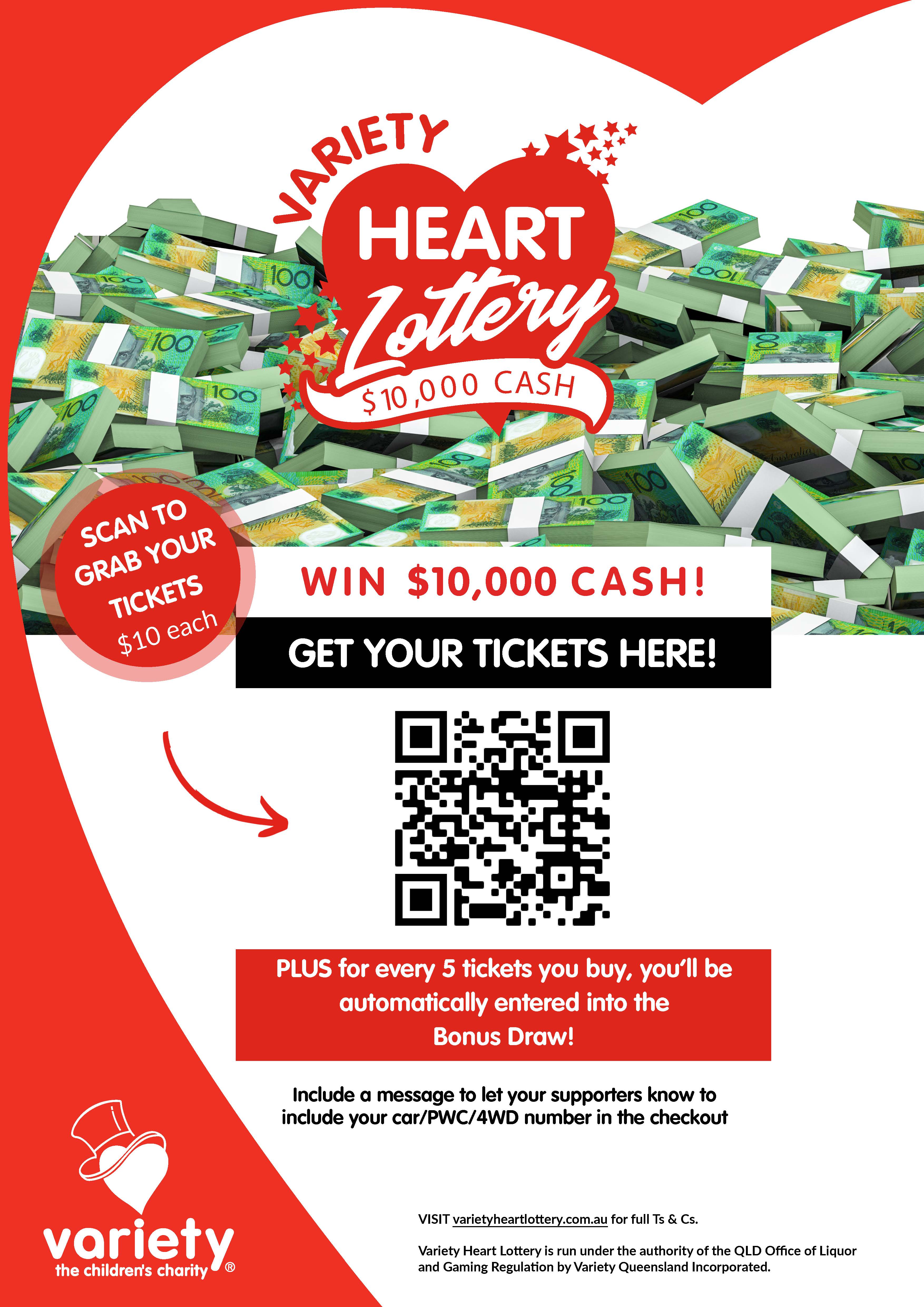 Simply print out and display this poster at your fundraising activity or event to encourage participants to purchase a ticket in the Variety Heart Lottery. To enter, all they have to do is simply scan the QR code on their phone, and it will take them straight to the checkout! Completely contactless and COVID safe!